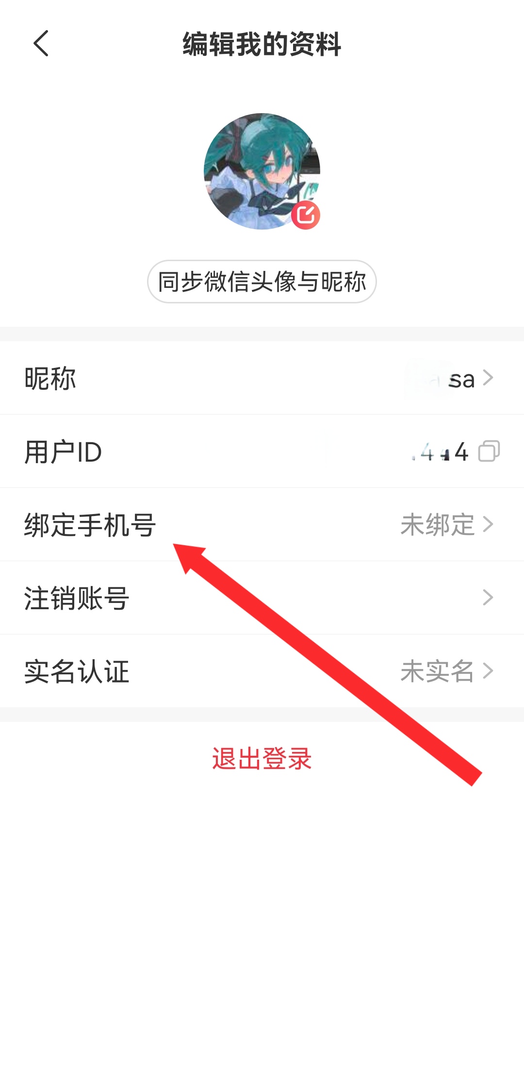 3、在編輯我的資料頁面,點擊綁定手機號,進入綁定手機號碼頁面。