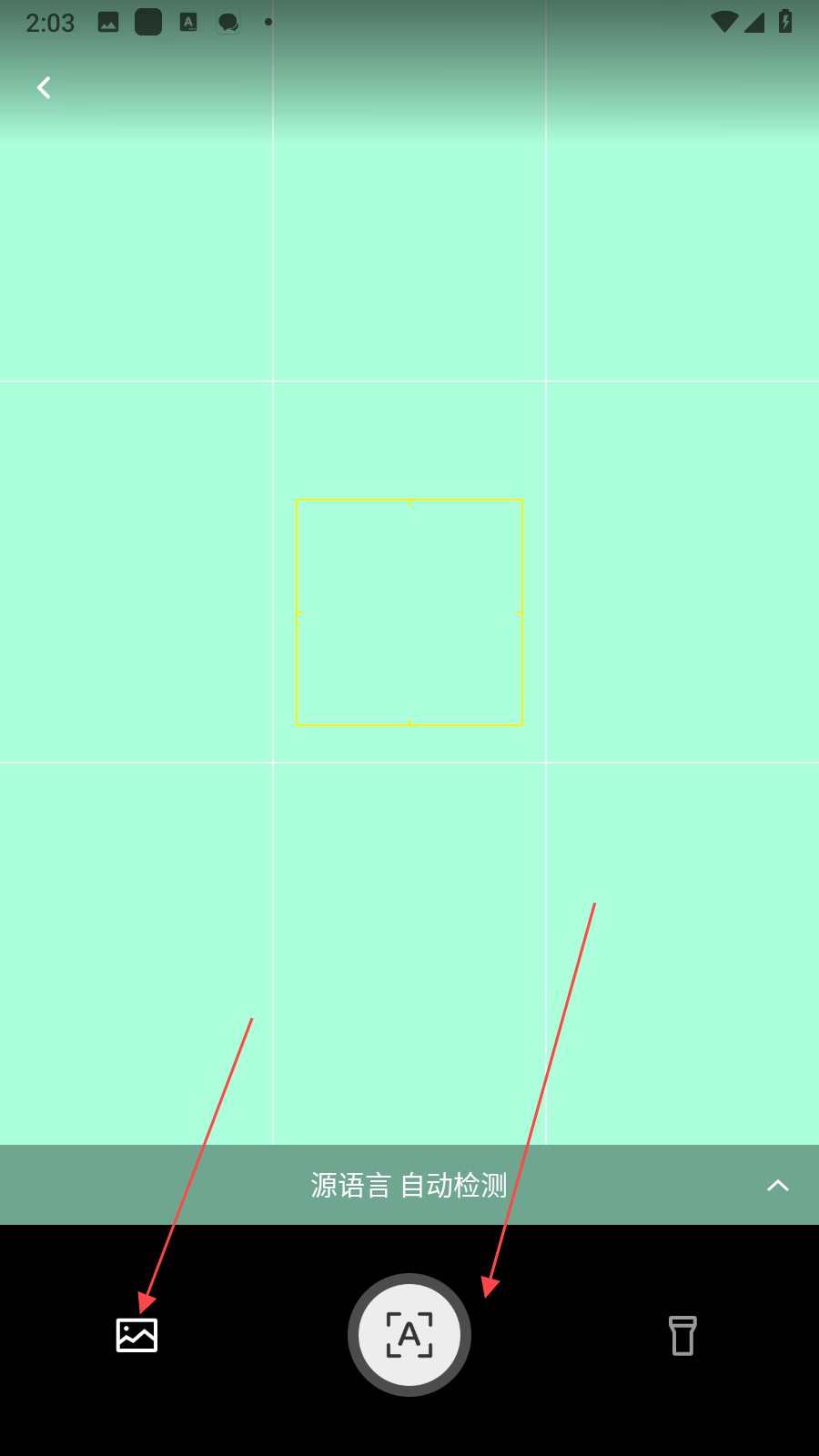 3、若需翻譯圖片中的文字,點(diǎn)擊首頁(yè)的拍照翻譯功能,進(jìn)入拍攝界面后,對(duì)準(zhǔn)需翻譯內(nèi)容拍攝,或者點(diǎn)擊左下角圖標(biāo)從相冊(cè)選擇圖片,之后應(yīng)用會(huì)自動(dòng)識(shí)別并翻譯圖片中的文字。