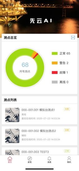 先云軟件是擁有著先進(jìn)的智能ai的手機軟件,在這里用戶能夠進(jìn)行工業(yè)設(shè)備的故障預(yù)測和監(jiān)測功能,幫助廣大的機械和工業(yè)的行業(yè)的人員進(jìn)行各種機械的檢測,大大降低事故發(fā)生的可能性,守護(hù)每一個工人的安全。還能夠進(jìn)行遠(yuǎn)程巡檢、預(yù)警、統(tǒng)計等等功能,非常的實用。
