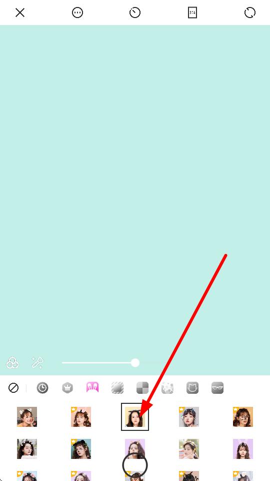 3、拍完照片后點(diǎn)擊底部的貼紙、濾鏡等功能按鈕,或者從下方樣式庫中選擇喜歡的貼紙、濾鏡效果,對照片進(jìn)行美化編輯,完成后保存即可。