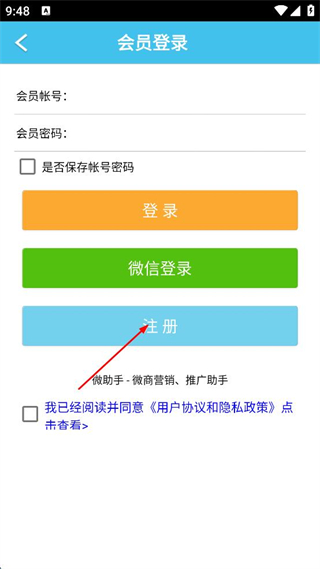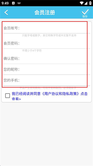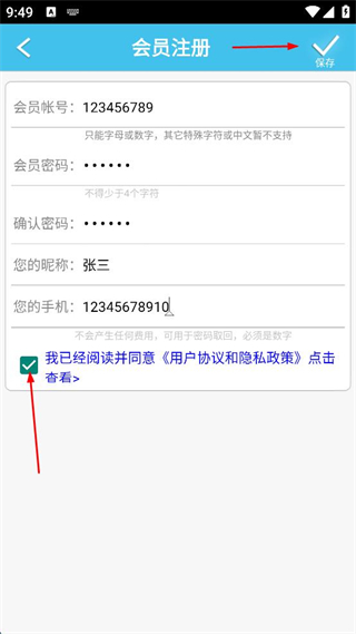 4、勾選已閱讀并同意用戶協(xié)議和隱私政策,點(diǎn)擊保存完成會員注冊。