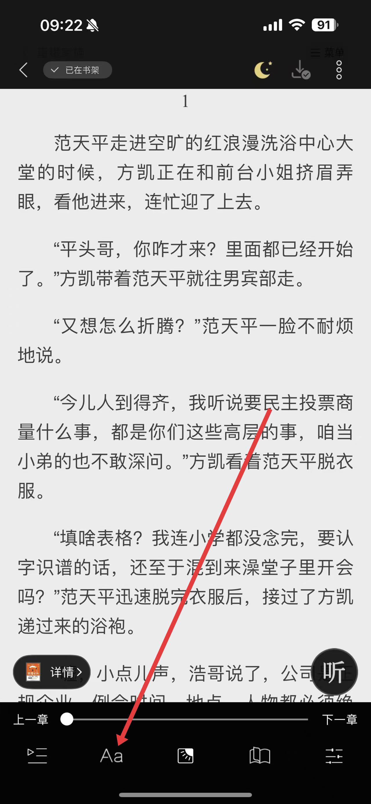 3、進入書籍閱讀頁面后,點擊屏幕下方中間位置的Aa圖標。