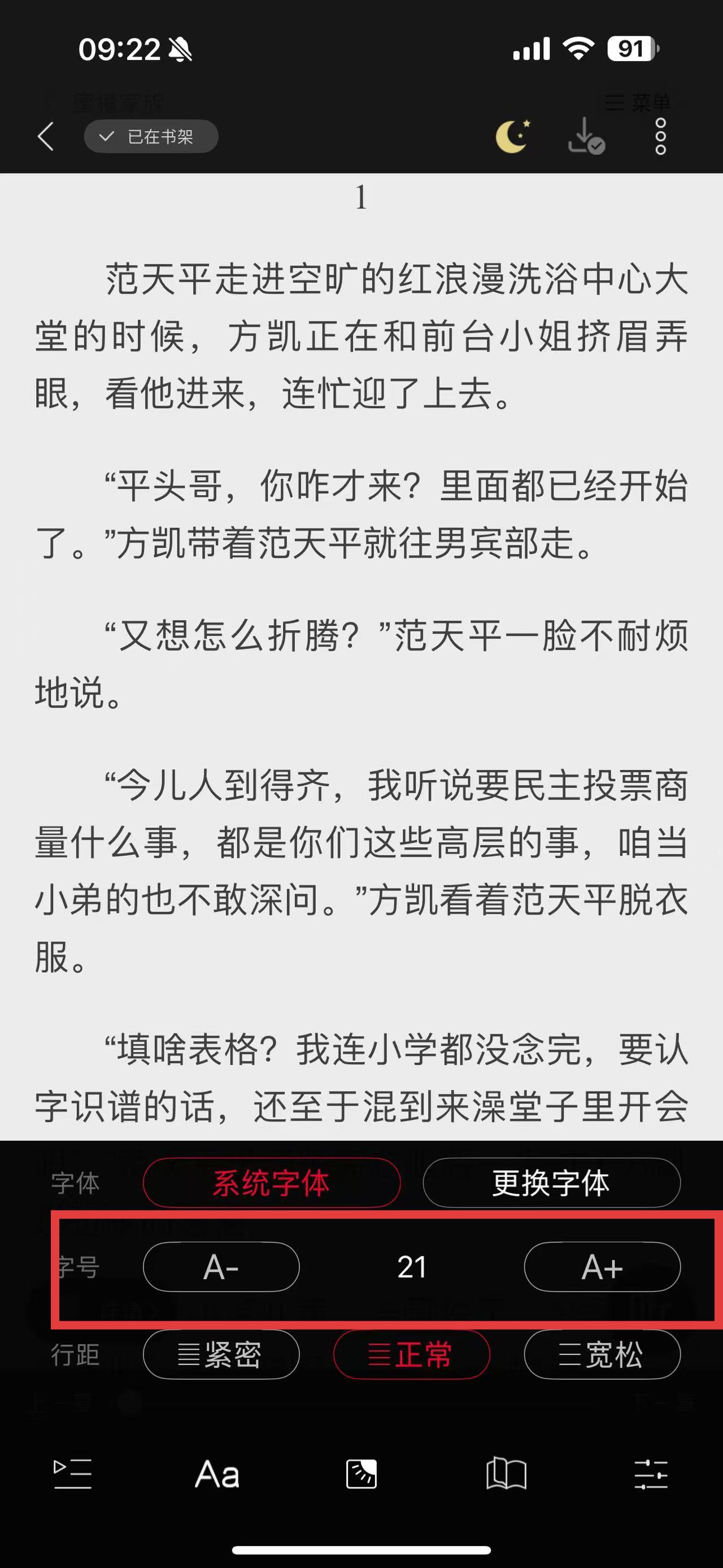 4、在彈出的設(shè)置界面里,通過點擊A-或A+來調(diào)整字體大小。