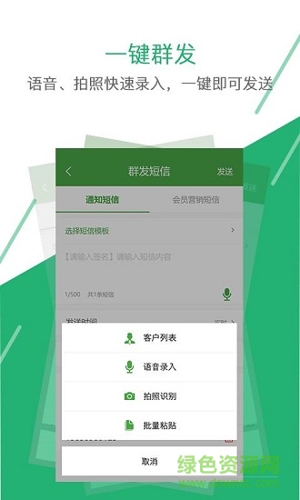短信群發(fā)軟件,讓你輕松做運(yùn)營推廣,提升通知和營銷的效率!拍照、語音快速錄入、一鍵群發(fā)、即發(fā)即到、免費試用!節(jié)日祝福、促銷宣傳、新品推廣、快遞通知等用牽??煨哦绦湃喊l(fā)。