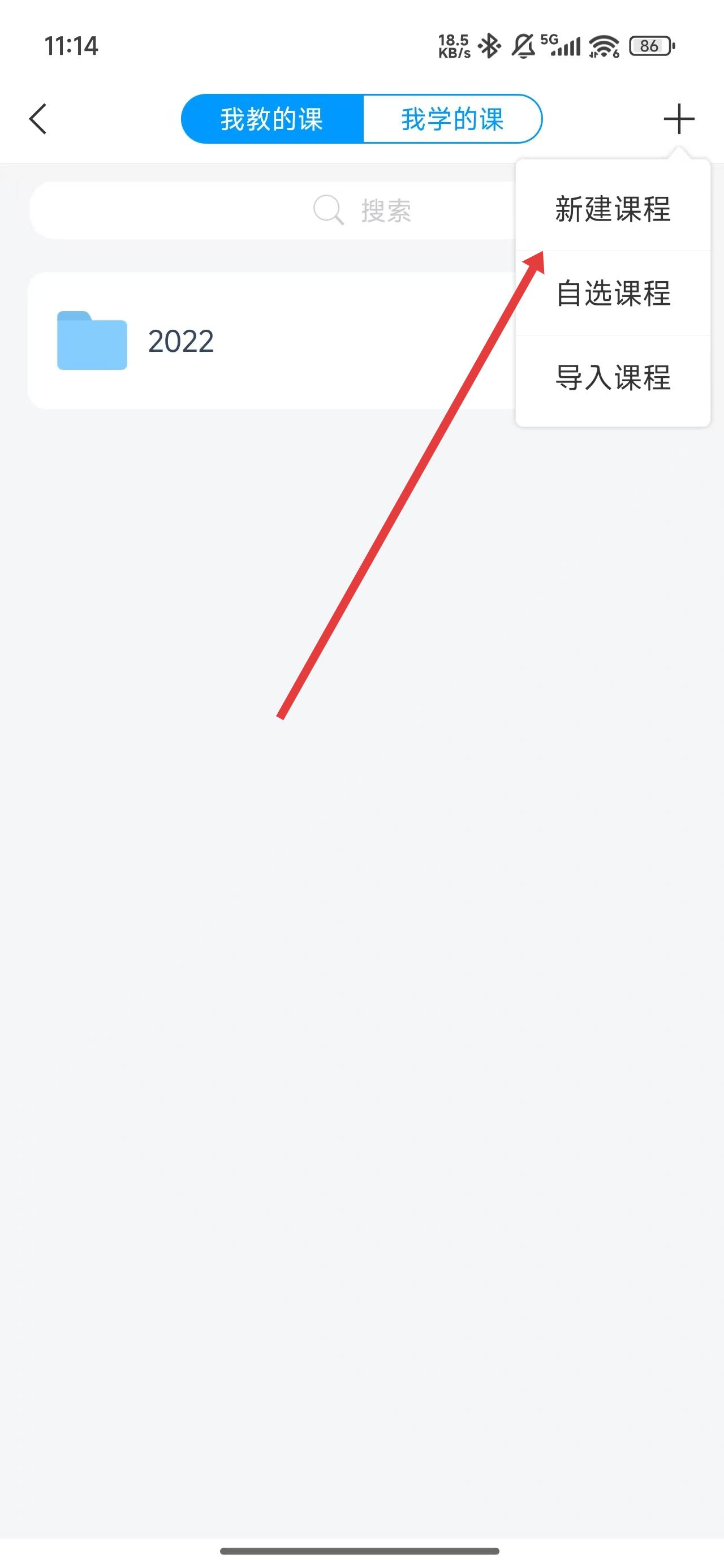 2、在進(jìn)入到我的課程頁面中后,可以點(diǎn)擊右上角的加號按鈕查看更多功能選項(xiàng)。