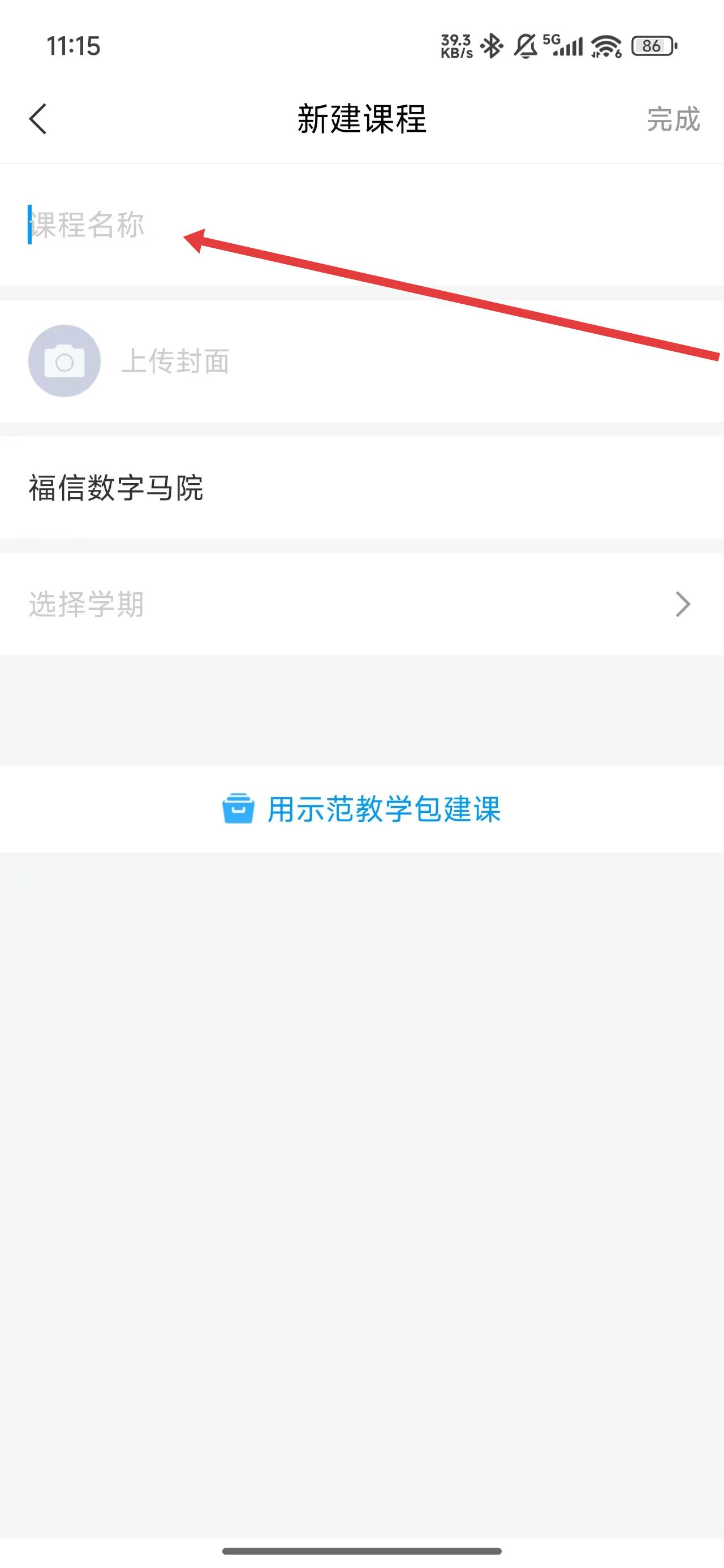 4、可以點(diǎn)擊輸入框填寫課程名稱,在填寫完后續(xù)內(nèi)容后完成課程的新建。