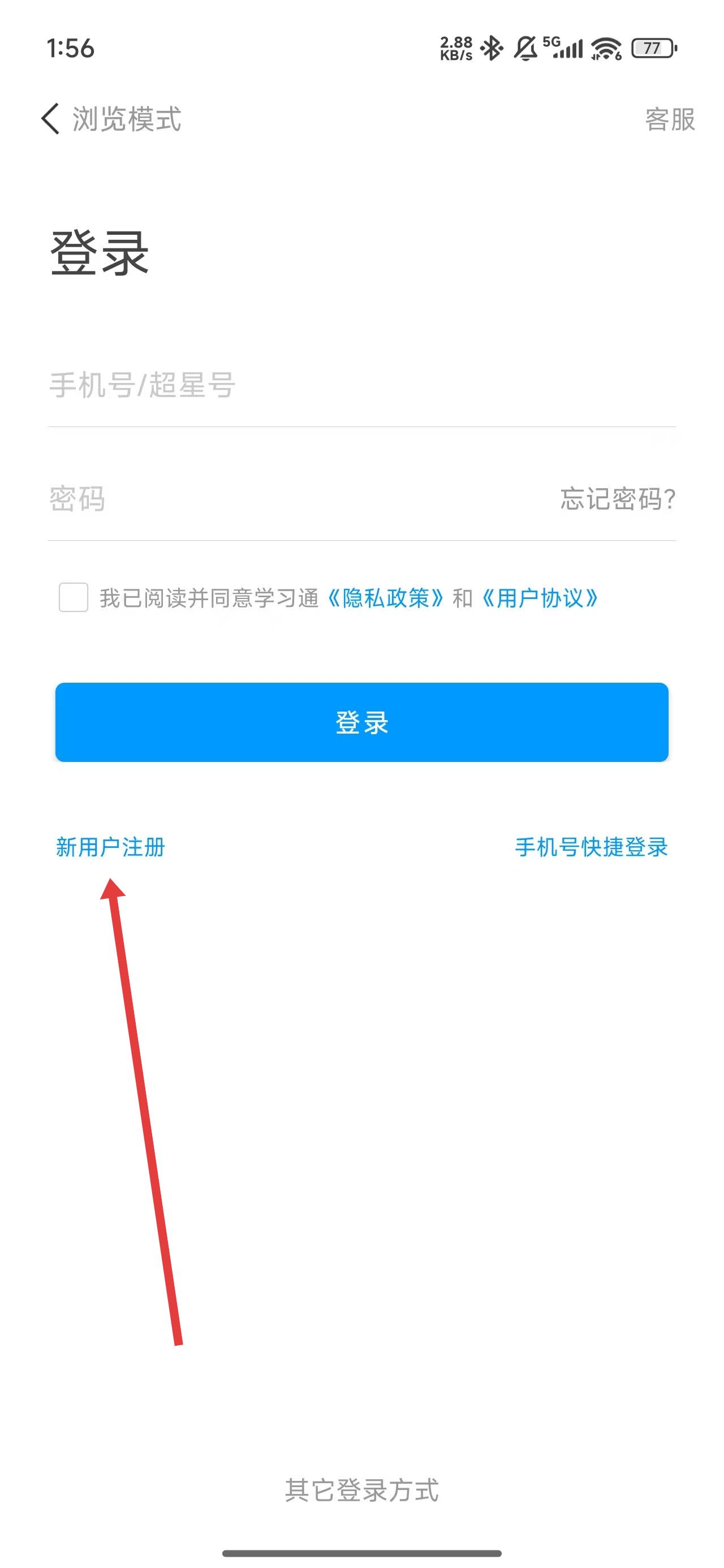 1、在進(jìn)入到登錄頁(yè)面時(shí),如果沒(méi)有賬號(hào)可以點(diǎn)擊下方新用戶注冊(cè)按鈕,進(jìn)行注冊(cè)。