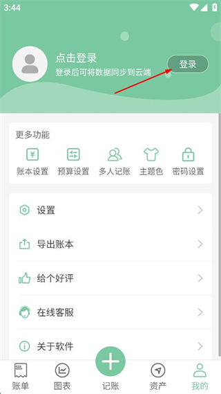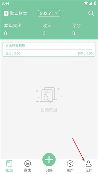 1、打開(kāi)記賬軟件,點(diǎn)擊右下角我的,進(jìn)入個(gè)人頁(yè)面。