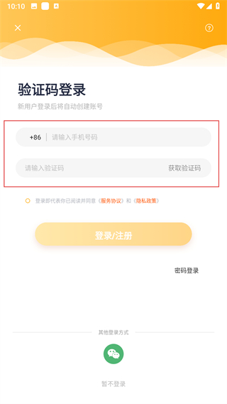 4、輸入手機(jī)號碼,點擊獲取驗證碼并輸入,點擊登錄即可。