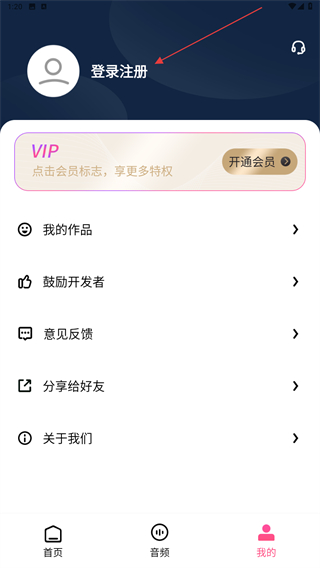 2、進(jìn)入我的頁(yè)面內(nèi),點(diǎn)擊上方登錄注冊(cè)的按鈕。