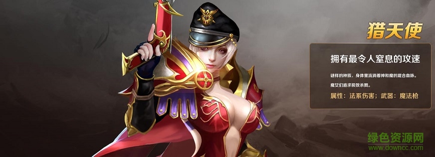 隸屬獵天魔族,神魔混血的身份讓獵天使多了一份邪魅和神秘.他們快如閃電,追求極致殺戮的快感,手持雙槍,擁有最強(qiáng)大的攻速.