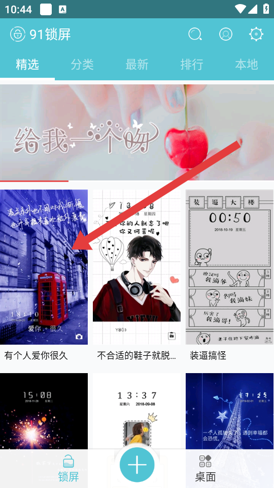 1、打開91智能鎖屏APP,在頁面中點擊想要使用的鎖屏壁紙,進入壁紙詳情頁面。