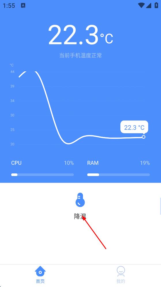 1、打開手機降溫類軟件,點擊頁面中的“降溫”按鈕,進入降溫流程。