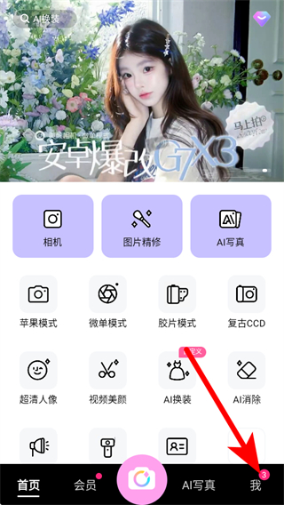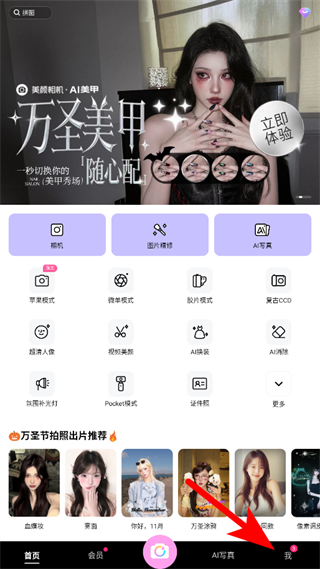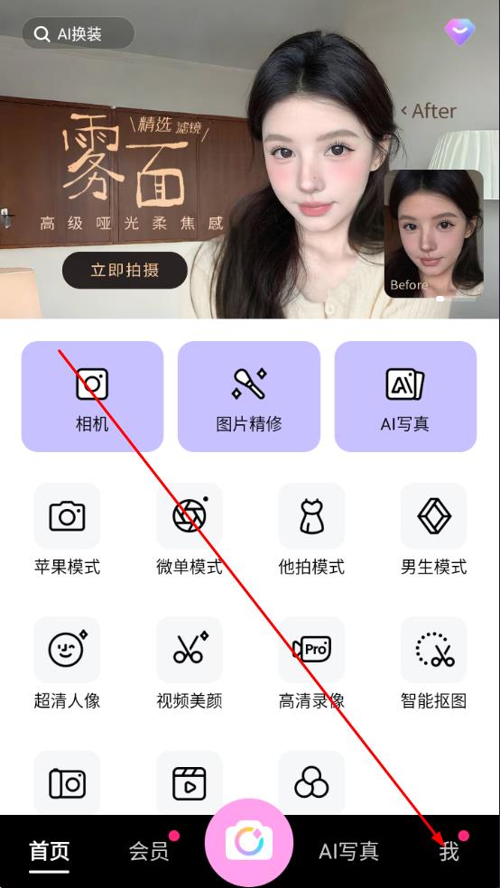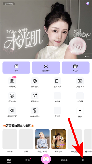 1、打開(kāi)美顏相機(jī)APP,點(diǎn)擊右下角我,進(jìn)入個(gè)人頁(yè)面。