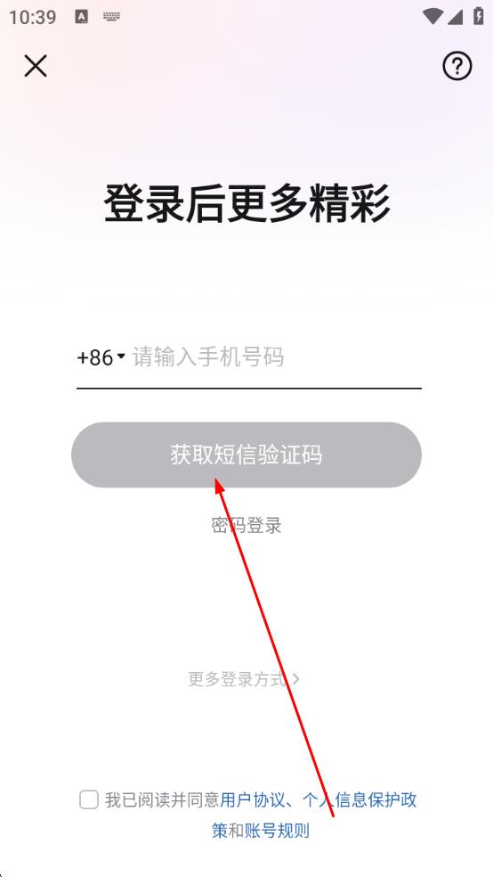 3、在登錄界面,選擇手機(jī)號(hào)登錄方式,輸入手機(jī)號(hào)碼,勾選同意協(xié)議,點(diǎn)擊獲取短信驗(yàn)證碼,填入收到的驗(yàn)證碼完成登錄。