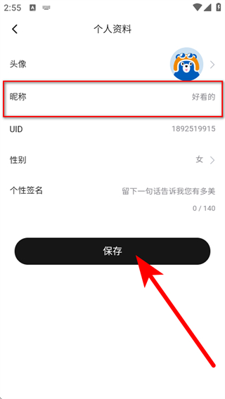 4、輸入完成后,點(diǎn)擊保存按鈕,即可完成昵稱修改。