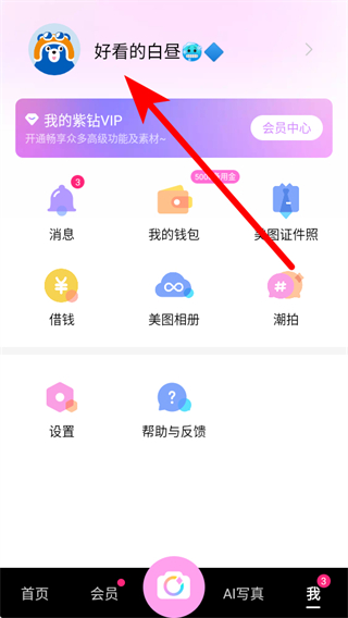 1、打開(kāi)美圖秀秀App,點(diǎn)擊底部導(dǎo)航欄最右側(cè)的我,進(jìn)入個(gè)人中心頁(yè)面。