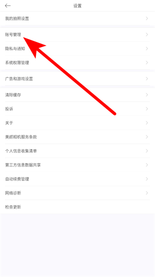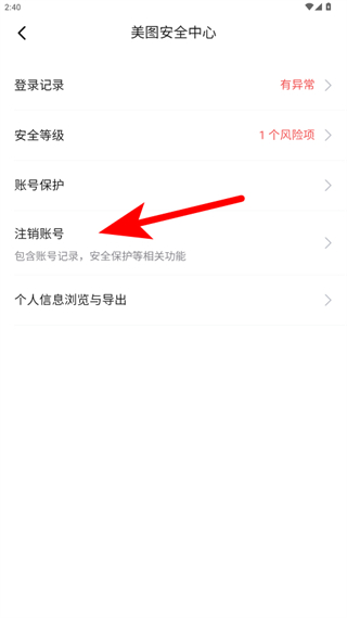 5、進(jìn)入美圖安全中心頁(yè)面后點(diǎn)擊注銷(xiāo)賬號(hào),即可注銷(xiāo)美顏相機(jī)賬號(hào)。