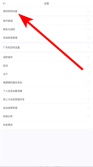 3、在設(shè)置頁(yè)面點(diǎn)擊我的拍照設(shè)置,進(jìn)入我的拍照設(shè)置頁(yè)面。