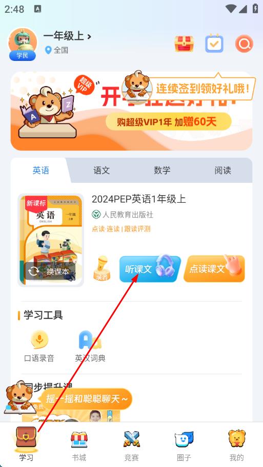 1、打開(kāi)好爸爸點(diǎn)讀機(jī)App,點(diǎn)擊聽(tīng)課文按鈕。