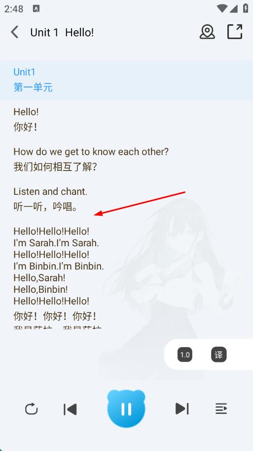 2、進(jìn)入課文播放頁(yè)面后,頁(yè)面會(huì)展示課文內(nèi)容,自動(dòng)開(kāi)始播放。
