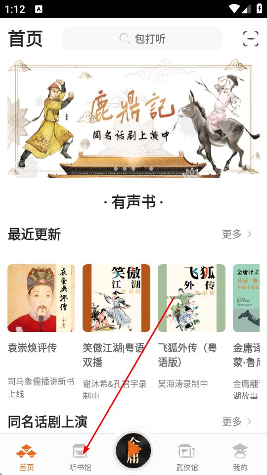 1、打開金庸聽書App,點擊底部導航欄中的聽書館選項。