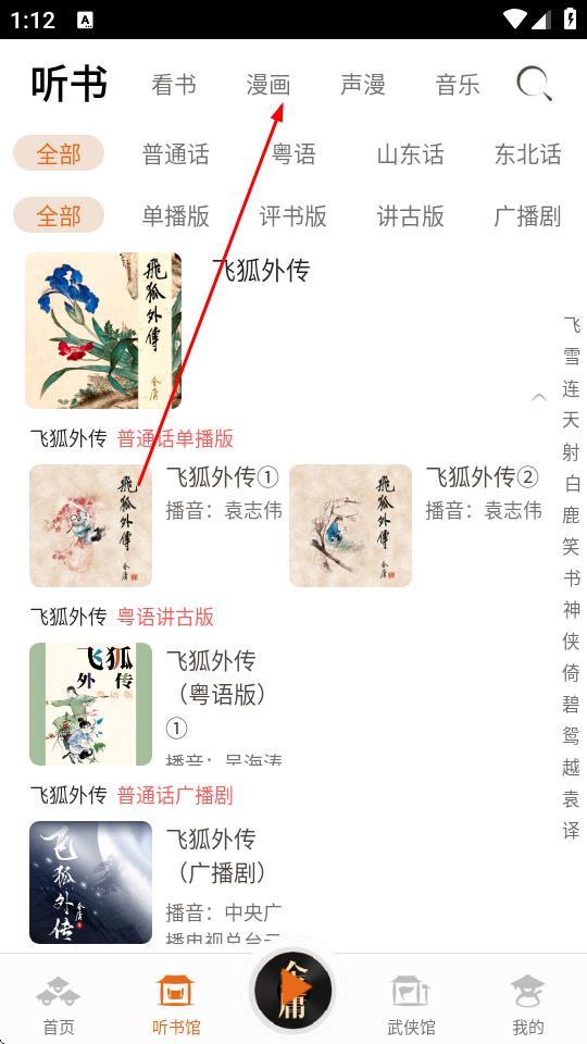 2、在聽書頁面上方,點擊漫畫選項,進入漫畫分類頁面。