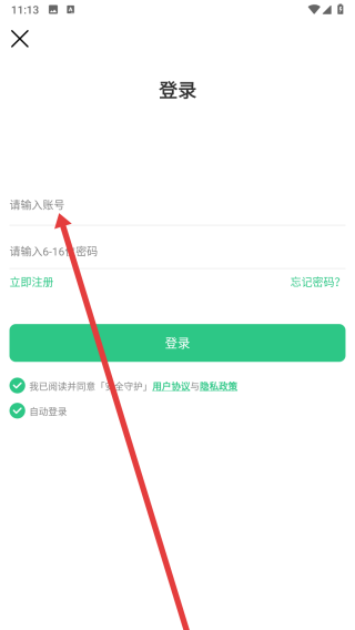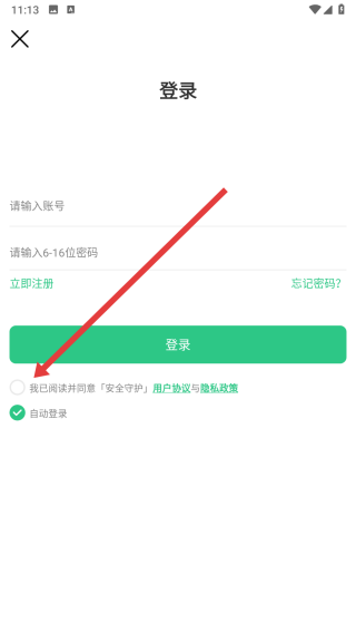 3、在進(jìn)入到賬號(hào)登錄頁(yè)面時(shí),需先點(diǎn)擊按鈕閱讀同意協(xié)議隱私條款。