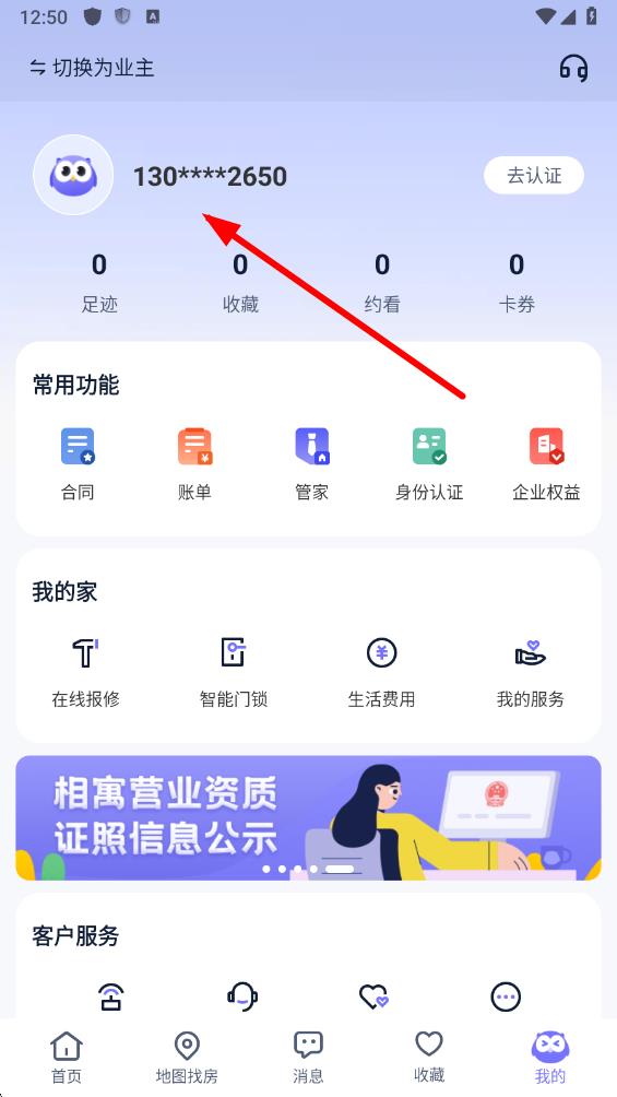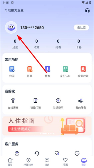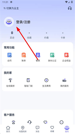 1、在相寓APP首頁,點(diǎn)擊右下角我的選項(xiàng),進(jìn)入個(gè)人中心界面。