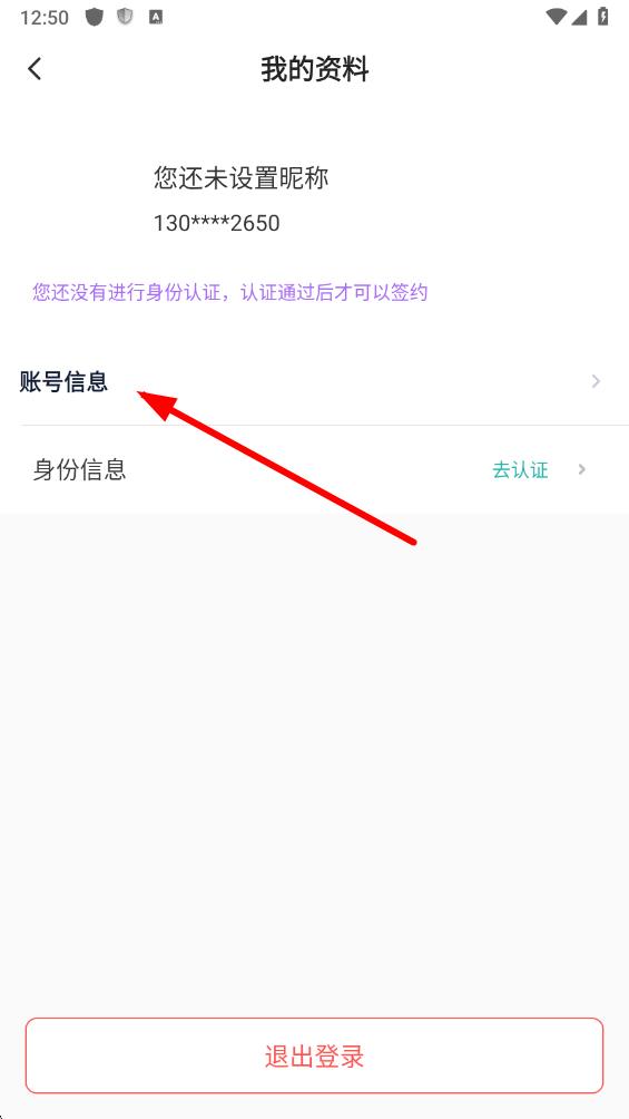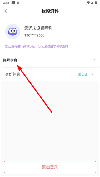 3、在我的資料頁面,點(diǎn)擊賬號(hào)信息選項(xiàng),進(jìn)入個(gè)人信息頁面。