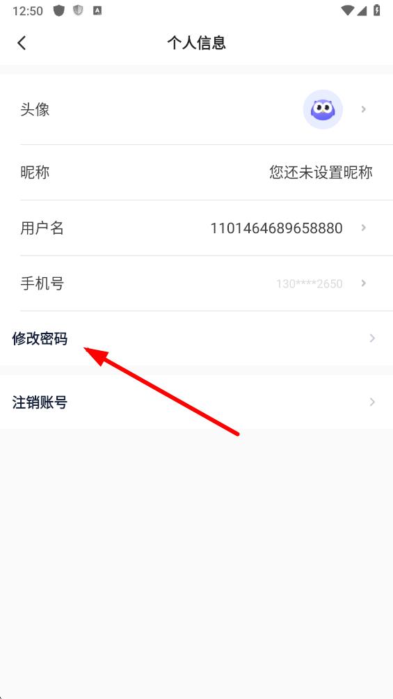 4、在個(gè)人信息頁面中,點(diǎn)擊修改密碼,進(jìn)入修改密碼頁面。