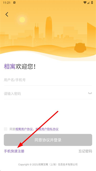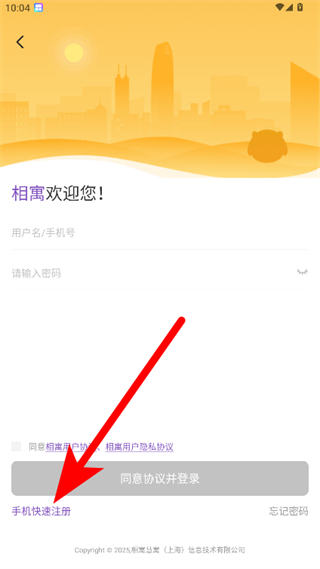 3、在登錄注冊(cè)頁面,點(diǎn)擊手機(jī)快速注冊(cè)選項(xiàng),進(jìn)入注冊(cè)界面。