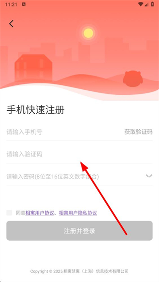 4、在手機(jī)快速注冊(cè)頁面輸入手機(jī)號(hào)、驗(yàn)證碼和密碼,勾選同意相關(guān)協(xié)議后點(diǎn)擊注冊(cè)并登錄按鈕,完成賬號(hào)注冊(cè)操作。