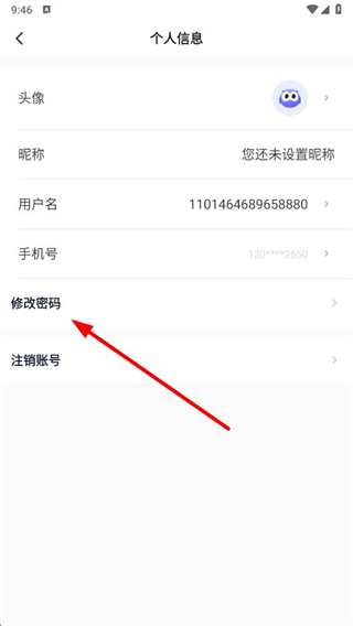 4、在個(gè)人信息頁面,點(diǎn)擊修改密碼選項(xiàng),按照提示完成登錄密碼修改操作即可。