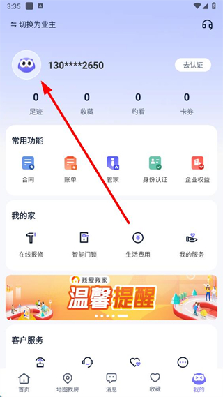 1、在相寓app首頁,點(diǎn)擊右下角我的選項(xiàng),進(jìn)入個(gè)人中心頁面。
