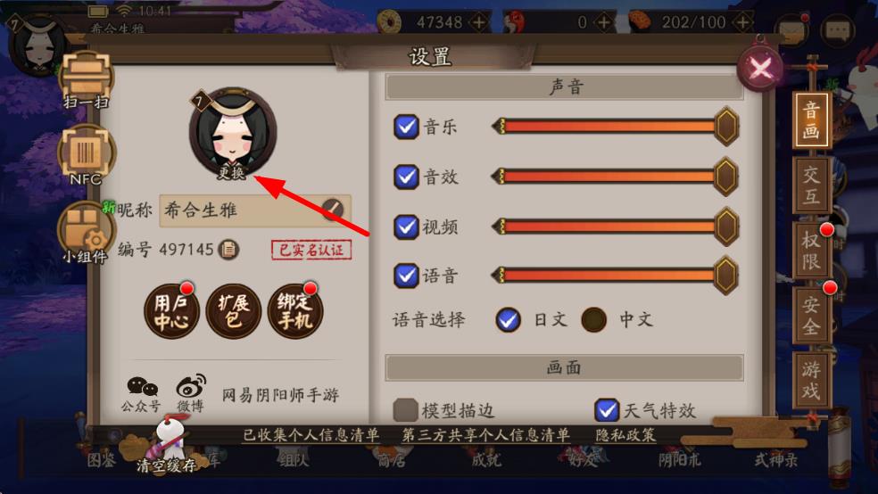 1、點(diǎn)擊陰陽(yáng)師游戲主界面左上角的頭像位置,進(jìn)入設(shè)置界面。