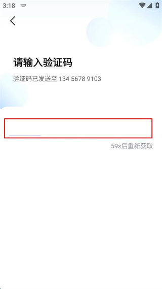 3、進(jìn)入請(qǐng)輸入驗(yàn)證碼界面,輸入收到的驗(yàn)證碼。