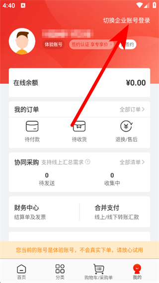 2、在個人的頁面中,需要點(diǎn)擊右上角切換企業(yè)賬號登錄的按鈕。