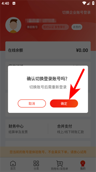 3、彈出確認(rèn)切換登錄賬號嗎的系統(tǒng)提示框后,點(diǎn)擊確定。