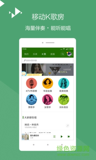 3.K歌、聽(tīng)歌一步到位,海量伴奏資源任你歡唱,本地音樂(lè)也能匹配伴奏資源;