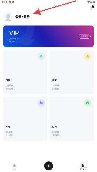 2、在個(gè)人中心頁(yè)面的頂部,用戶需找到登錄/注冊(cè)的按鈕并點(diǎn)擊。
