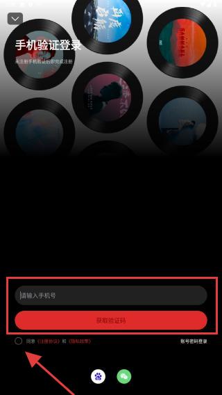 3、在登錄頁(yè)面,點(diǎn)擊手機(jī)驗(yàn)證登錄選項(xiàng),輸入手機(jī)號(hào)碼,獲取并填寫(xiě)驗(yàn)證碼,也可直接點(diǎn)擊底部的微信/QQ圖標(biāo)快速登錄。