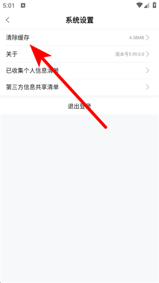 3、進(jìn)入系統(tǒng)設(shè)置頁(yè)面后,選擇清除緩存選項(xiàng),該選項(xiàng)會(huì)顯示當(dāng)前緩存大小。