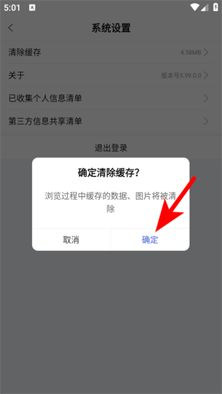 4、彈出確認(rèn)清除的提示窗口后,點(diǎn)擊確定,即可完成緩存數(shù)據(jù)的清除。