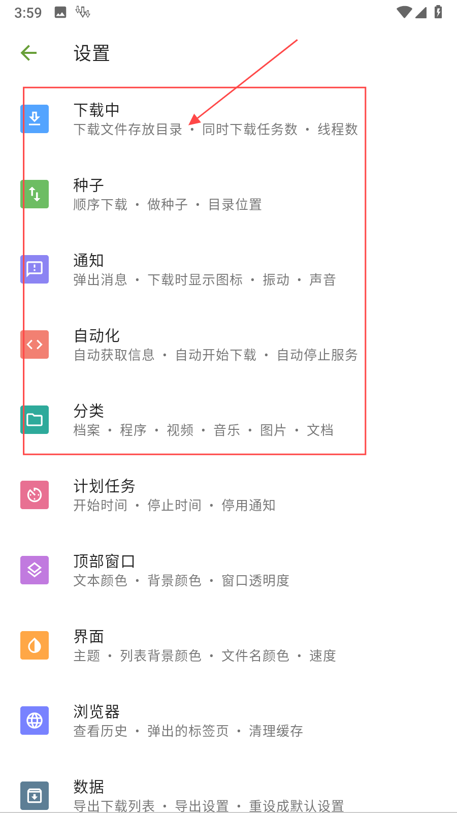 2、在設(shè)置頁(yè)面中,還能對(duì)種子、通知、自動(dòng)化、分類等功能進(jìn)行設(shè)置,種子方面可設(shè)置順序下載、做種子以及目錄位置,通知方面能選擇是否彈出消息、下載時(shí)是否顯示圖標(biāo)等等。