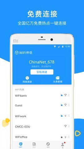 免費wifi伴侶app是一款功能強大的wifi工具,能夠輕松wifi熱點,智能安全監(jiān)測,上網快速穩(wěn)定,蹭網必備神器,有需要的朋友歡迎在綠色資源網下載吧!