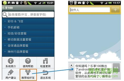 在軟件的主操作界面,點(diǎn)擊手機(jī)上的菜單功能鍵,在彈出的菜單欄中選擇“推薦給好友”菜單項(xiàng),將會(huì)進(jìn)入到短信編輯界面,在這里只需要輸入您好友的手機(jī)號(hào)碼點(diǎn)擊“發(fā)送”按鈕即可。如下圖所示。