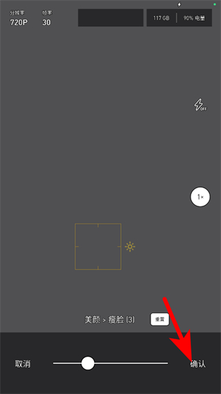 4、調(diào)整好美顏參數(shù)如瘦臉程度后,點(diǎn)擊確認(rèn),完成Protake的美顏設(shè)置。