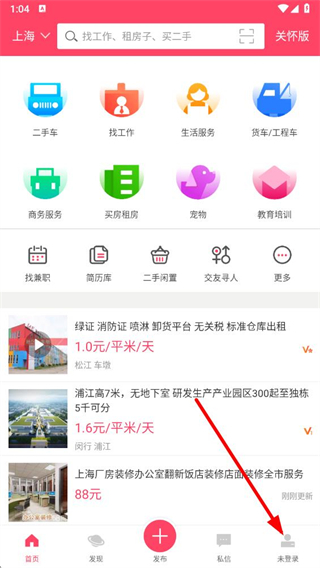 1、打開百姓網(wǎng)app,點(diǎn)擊右下角未登錄選項(xiàng),進(jìn)入登錄頁面。