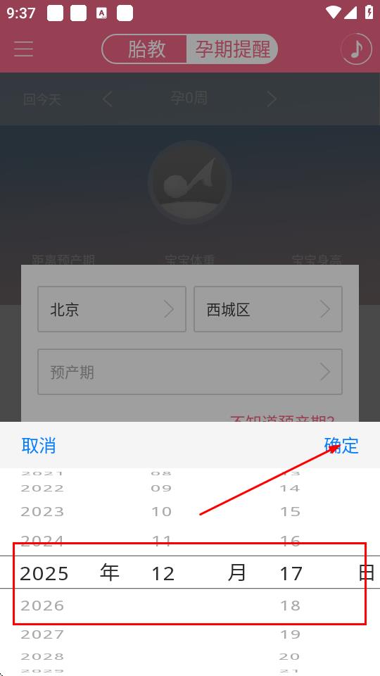 3、在日期選擇器中選擇寶寶的預(yù)產(chǎn)期日期,點(diǎn)擊確定。